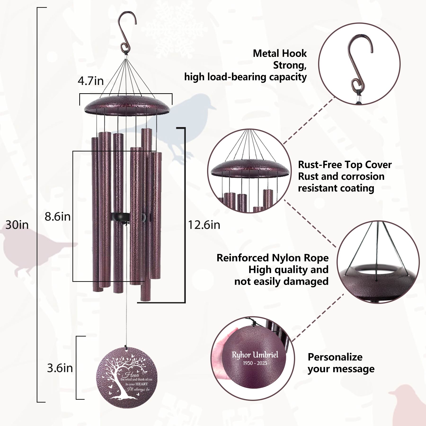 Astarin Personalized Memorial Wind Chimes,Sympathy and Memorial Chimes