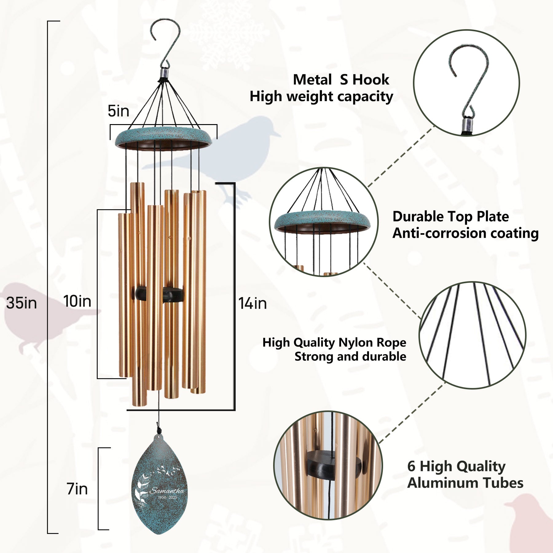 Flowers fade, but memories sing forever. Give a gift of lasting comfort with our engraved memorial wind chimes. Perfect for funerals or celebration of life services. High-quality aluminum tubes for a rich, soothing sound.